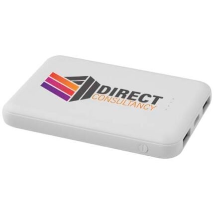 Power bank with slim and elegant design and Type-C in/output port and 2x USB-A ports which means that 3 devices can be charged simultaneously. The power bank features a 5000 mAh lithium polymer battery which delivers a total output power of max. 10W. This power bank is made of 23% RCS certified recycled plastic. Delivered with a TPE Type-C to USB-A charging cable.