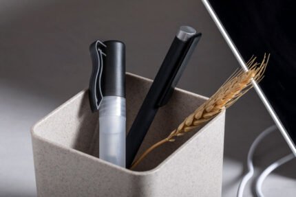 The Aira wheat straw Bluetooth® speaker is a made of 51% wheat straw and 49% PP material and carries Blutooth 5.0 technology . It features a built in 350 mAh rechargeable lithium-ion battery that delivers up to 1.5 hours of playback time at max volume! With a 3 watt speaker output and built in music controls/microphone the Aira Bluetooth® speaker makes the perfect desktop speaker. Packaged in a gift box and delivered with an instruction manual (both made of sustainable material). Micro-USB charging cable is included.